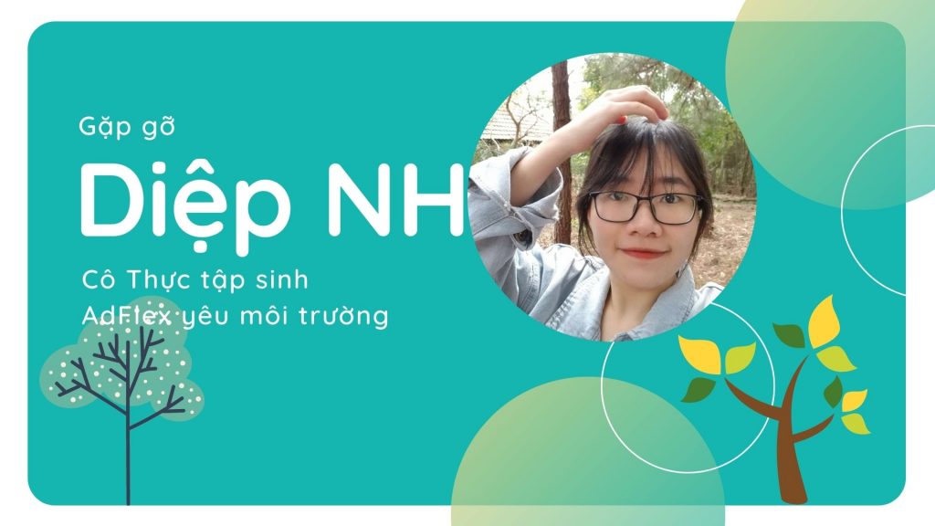 Tôi tranh thủ lôi Diệp ra một góc trò chuyện vào cuối buổi chiều thứ 6, lúc công việc đã vãn. Kể từ khi vào công ty, không giây phút nào Diệp và team của mình ngơi nghỉ. Em là thực tập sinh HRBP tại AdFlex – 1 công việc mới đầy thử thách nhưng cũng vô cùng thú vị. Cùng trò chuyện để hiểu hơn về Diệp cũng như công việc và cuộc sống ngập tràn sắc xanh tươi vui nhé.