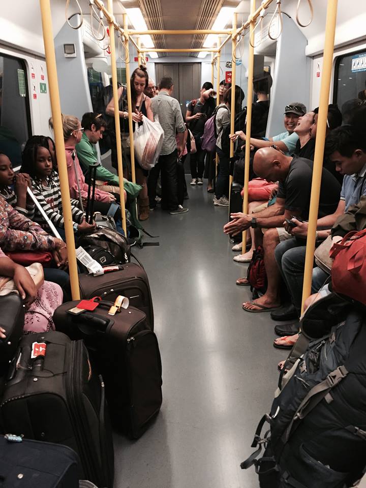 Chúng tôi di chuyển về khách sạn bằng tàu điện trên cao, phương tiện luôn được ưa chuộng tại Thái Lan.