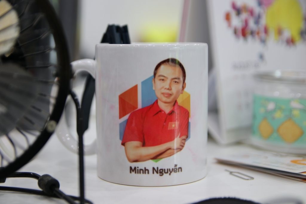 Ngày đầu “nằm vùng” DYNO, tôi có chút ngỡ ngàng bởi những mẩu chuyện tếu táo, không đầu không cuối của họ. Tôi bật cười thành tiếng khi chị Huyền Kaitou đặt trước mặt tôi chiếc cốc in hình anh Minh giám đốc DYNO – với nụ cười của duyên dáng: “ Đây là anh Minh của bọn chị nhé, anh ấy rất dịu dàng”. Chiếc cốc này hẳn là thay cho của anh Minh mỗi khi công tác xa nhà. Vậy là cả buổi làm việc, tôi và anh Minh cứ nhìn nhau cười âu yếm…
