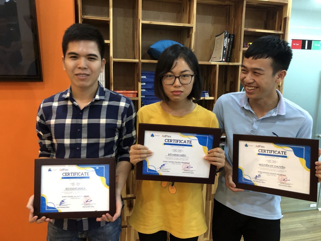 Sau buổi đánh giá, team Tech EWAY đã quyết định trao chứng nhận cho các cá nhân đã tham gia và hoàn thành giai đoạn 1 của khóa học. Anh Phạm Phương Tú kỳ vọng, đây sẽ là bước đệm để các bạn thực tập sinh có được sự tự tin, niềm đam mê cũng như những định hướng tốt nhất về nghề nghiệp trong tương lai.