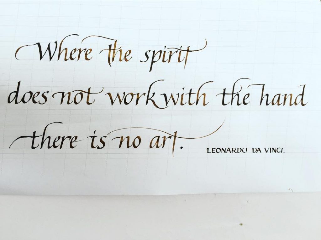 Theo như Hùng giải thích, Calligraphy bao hàm rất nhiều thứ chứ không hẳn chỉ là “Thư pháp. ” Có thể hiểu nôm na Calligraphy là “nghệ thuật sử dụng chữ để truyền tải nội dung.” Đây là nghệ thuật viết tay, dùng giấy, bút, mực để viết lên những văn bản “đẹp như in” với các kiểu chữ có quy chuẩn riêng. Bộ môn này sử dụng rất nhiều kiểu chữ, chẳng hạn như Copperplate hay là Spencerian, Italic, Roman, vv.