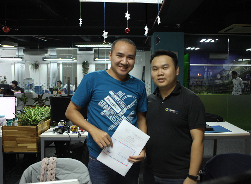 Để ghi nhận kết quả nghiên cứu và ứng dụng công nghệ Docker vào giải quyết bài toán sản phẩm tại EWAY, cũng như việc chia sẻ kiến thức tới cộng đồng, góp phần tạo danh tiếng cho EWAY, BOD đã quyết định thưởng nóng cho anh Nguyễn Văn Nghị với mức tiền thưởng 500.000 VNĐ
