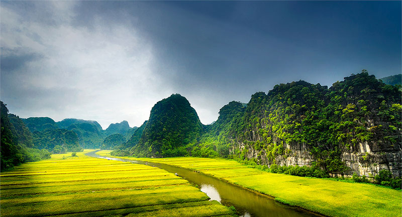13h30: Xe đưa đoàn ra bến đò Tràng An lên thuyền đi dọc theo suối giữa cánh đồng lúa thăm khu du lịch Tràng An nơi những dải đá vôi, thung lũng và những sông ngòi đan xen tạo nên một không gian huyền ảo, kỳ bí.